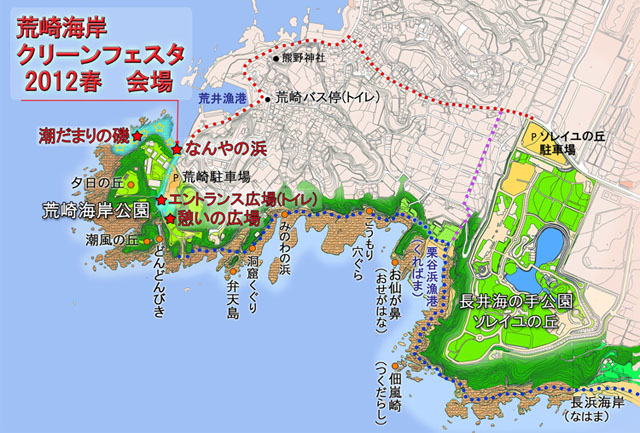 クリーンフェスタ終了後、荒崎シーサイドハイキングコース(下図青い点線)の磯歩きや、ソレイユの丘を楽しんだ方も多かったようです♪