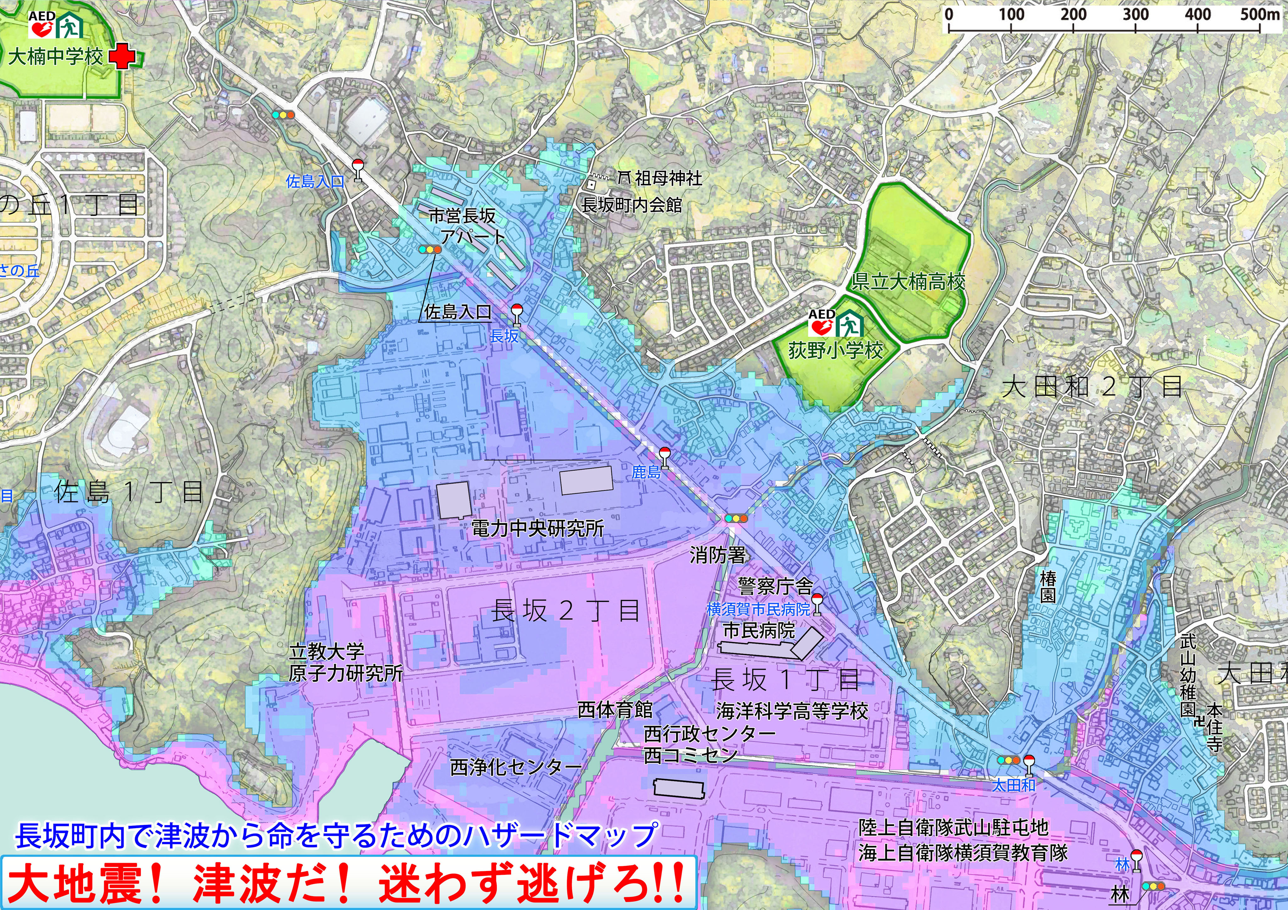 各マップ共通の凡例・説明と津波避難の3原則(PDF)